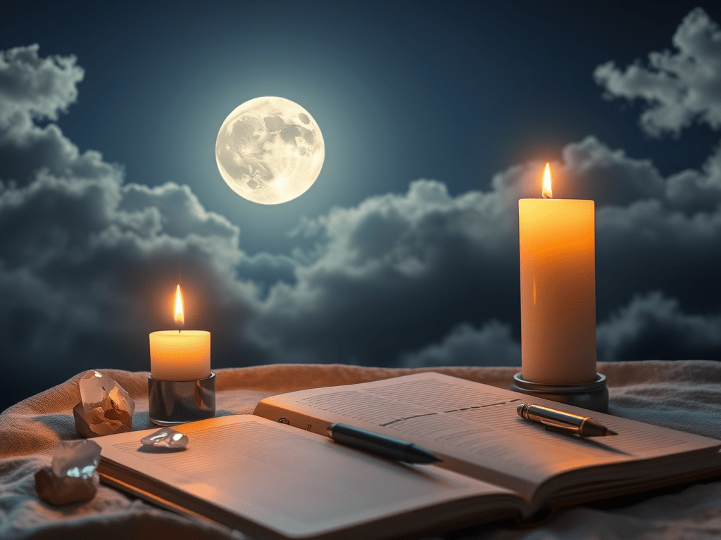 Light your candle. Take a few deep breaths and imagine the moon shining above you, even if it’s hidden by clouds. Let that soft lunar energy wrap around you like a gentle hug.
