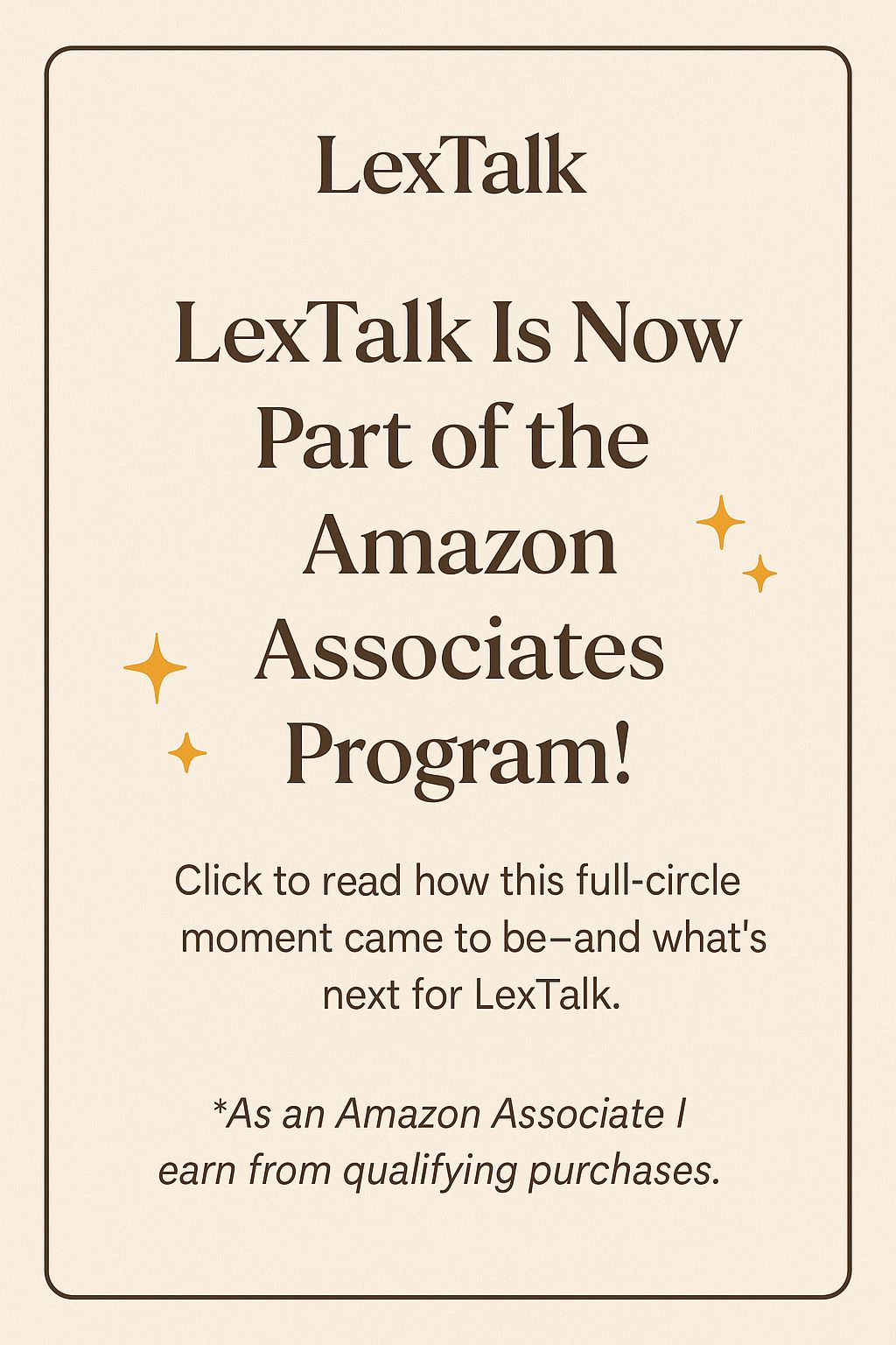 It means I can now share Amazon affiliate links in my blog posts and social content. If you click on one of my links and make a purchase, I may earn a small commission—at no extra cost to you. This helps support the time and love I pour into LexTalk, and keeps the blog going strong.